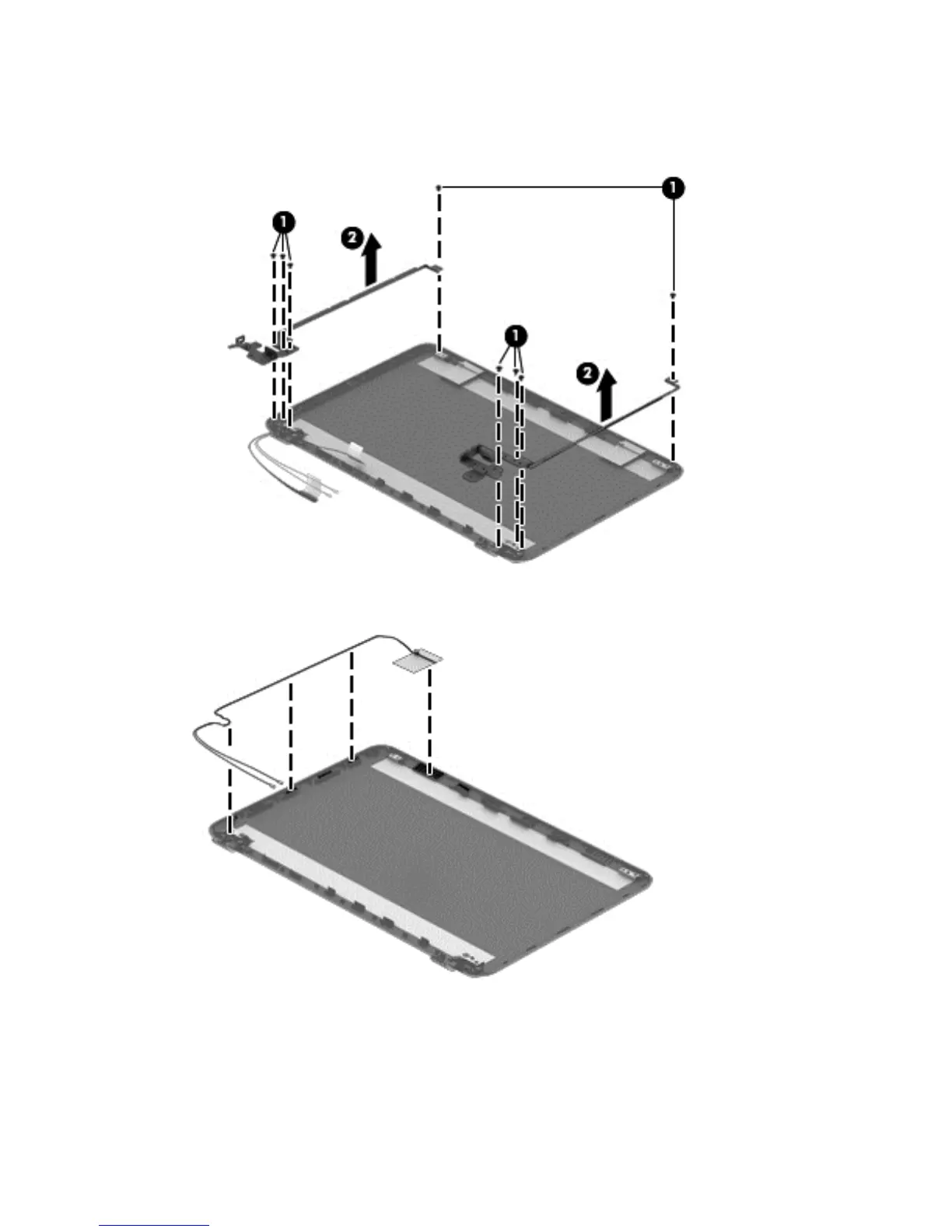 b. Remove the display hinges (2).