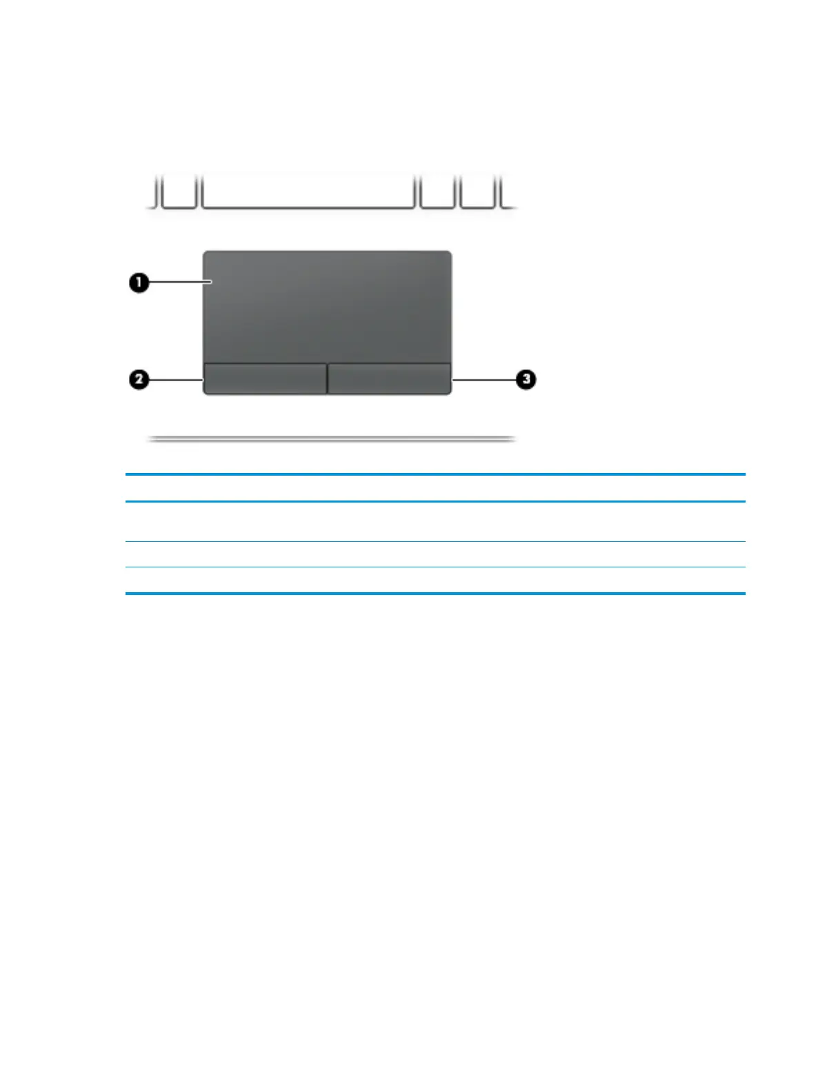 (1) TouchPad zone Reads your nger gestures to move the pointer or activate items