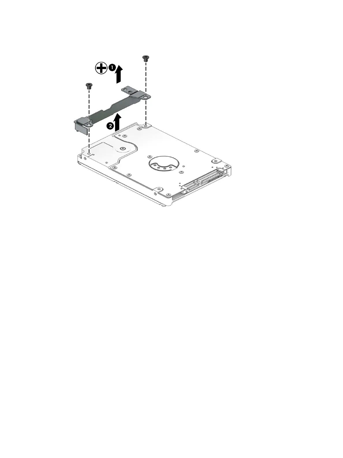 2. If it is necessary to disassemble the hard drive, remove the two Phillips M3.0 × 3.0 screws (1), and then