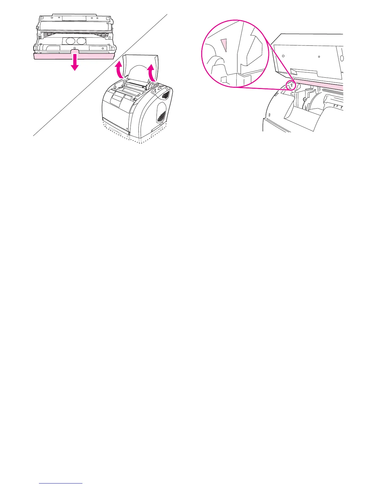 7) Aliniaţi săgeţile verzi de la capetele tamburului foto-sensibil cu