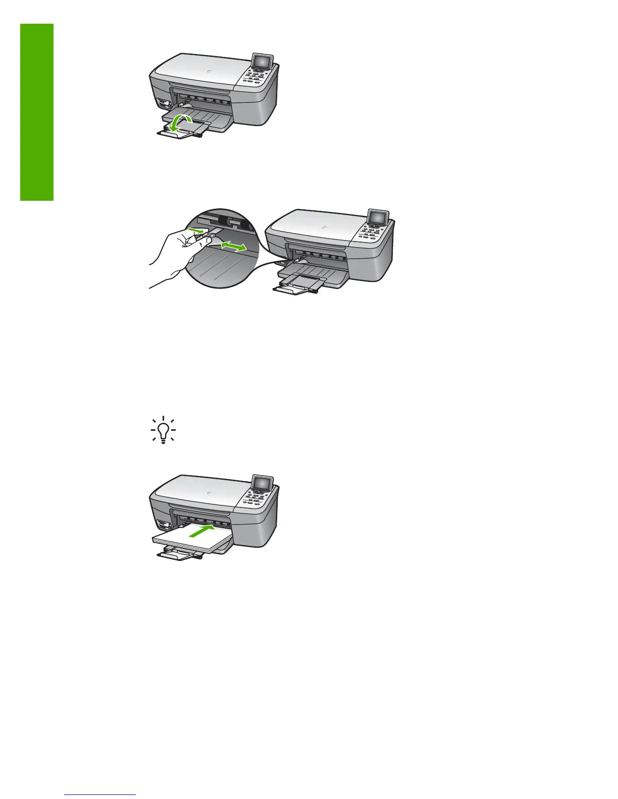 tray and is no higher than the top of the paper-width guide.