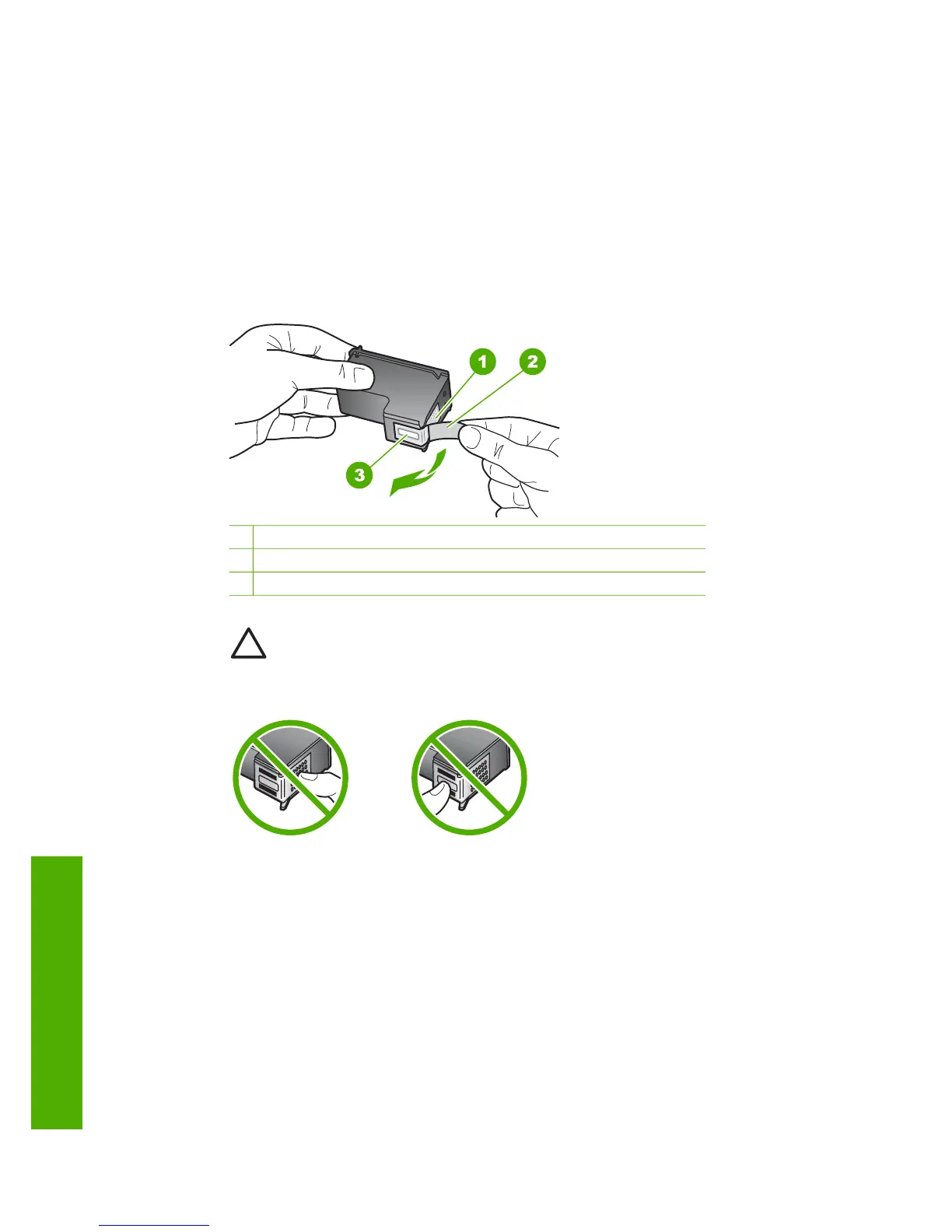 Caution Do not touch the copper-colored contacts or ink nozzles.