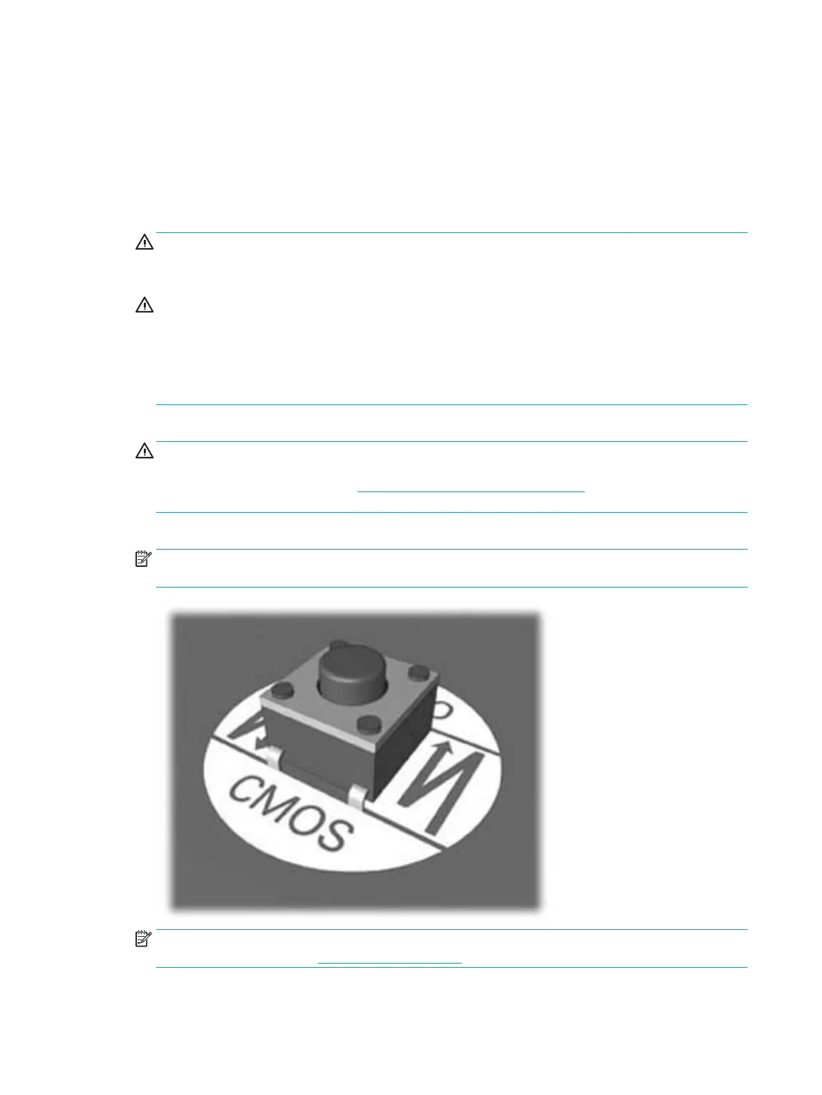 NOTE: For assistance locating the CMOS button and other system board components, see the system