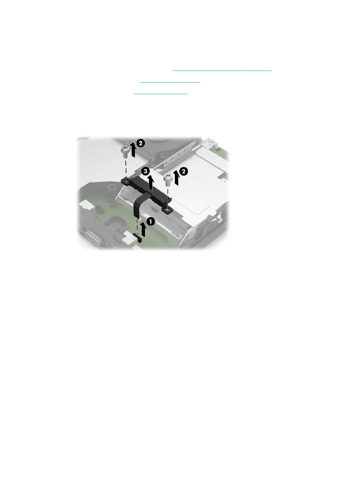 5. Remove the two Torx T15 screws that secure the connector to the drive cage (2).
