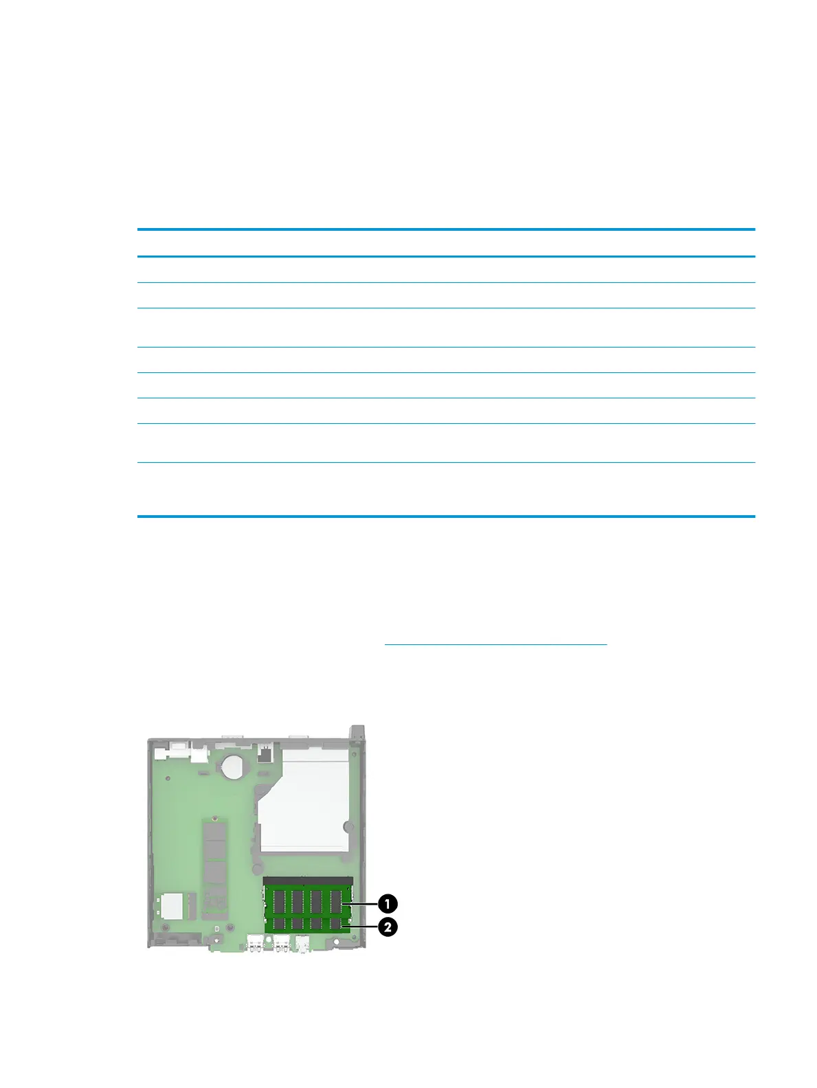 There are two memory module slots on the system board, with one slot per channel. The slots are labeled