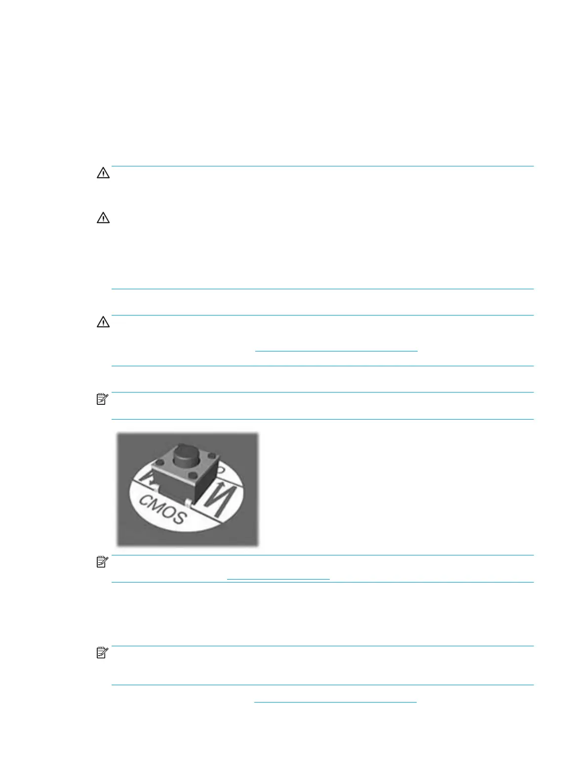 NOTE: For assistance locating the CMOS button and other system board components, see the system