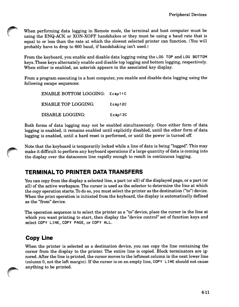 HP 262SA - Terminal to Printer Data Transfers; Copy Line