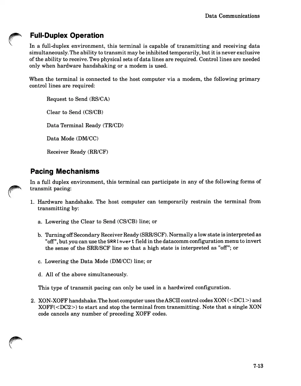 HP 262SA - Full Duplex Operation; Pacing Mechanisms