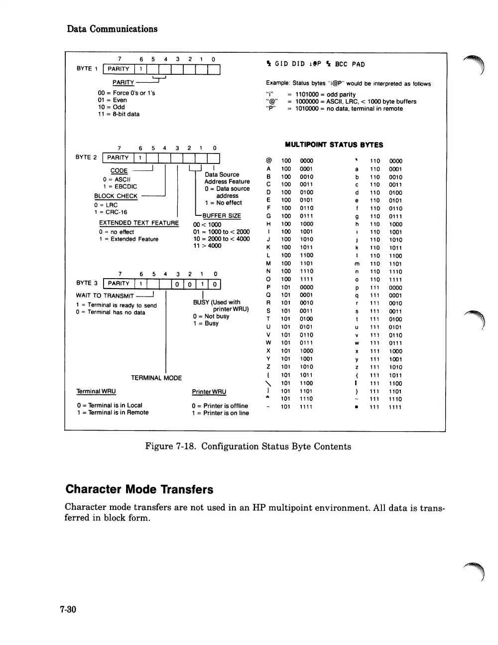 HP 262SA - Character Mode Transfers; Configuration Status Byte Contents