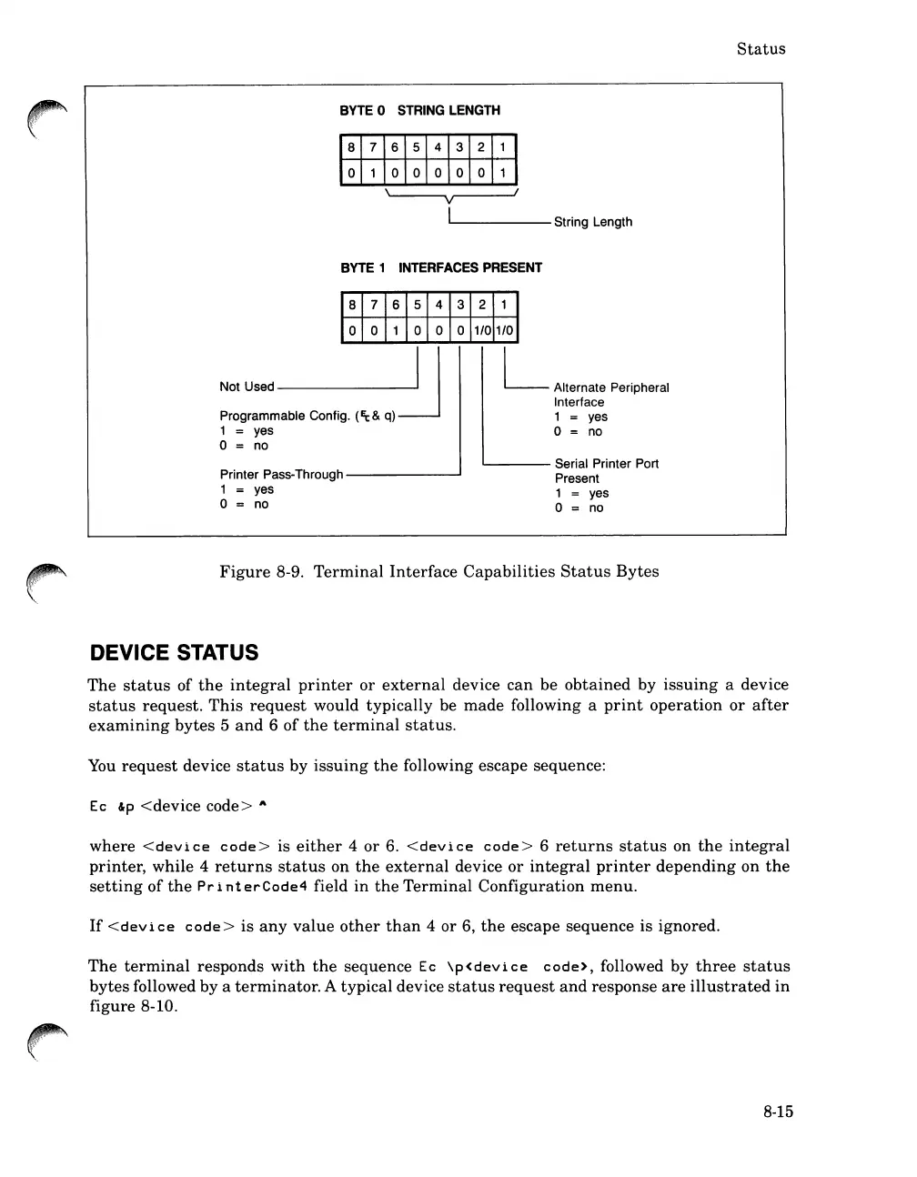 HP 262SA - Device Status; Terminal Interface Capabilities Status Bytes