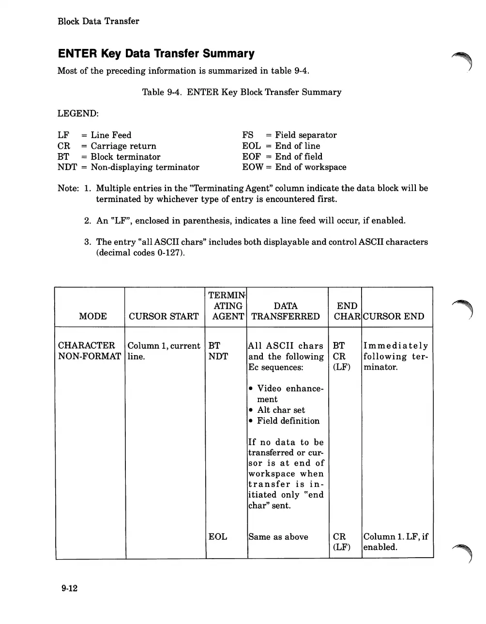 Table 9-4. ENTER Key Block Transfer