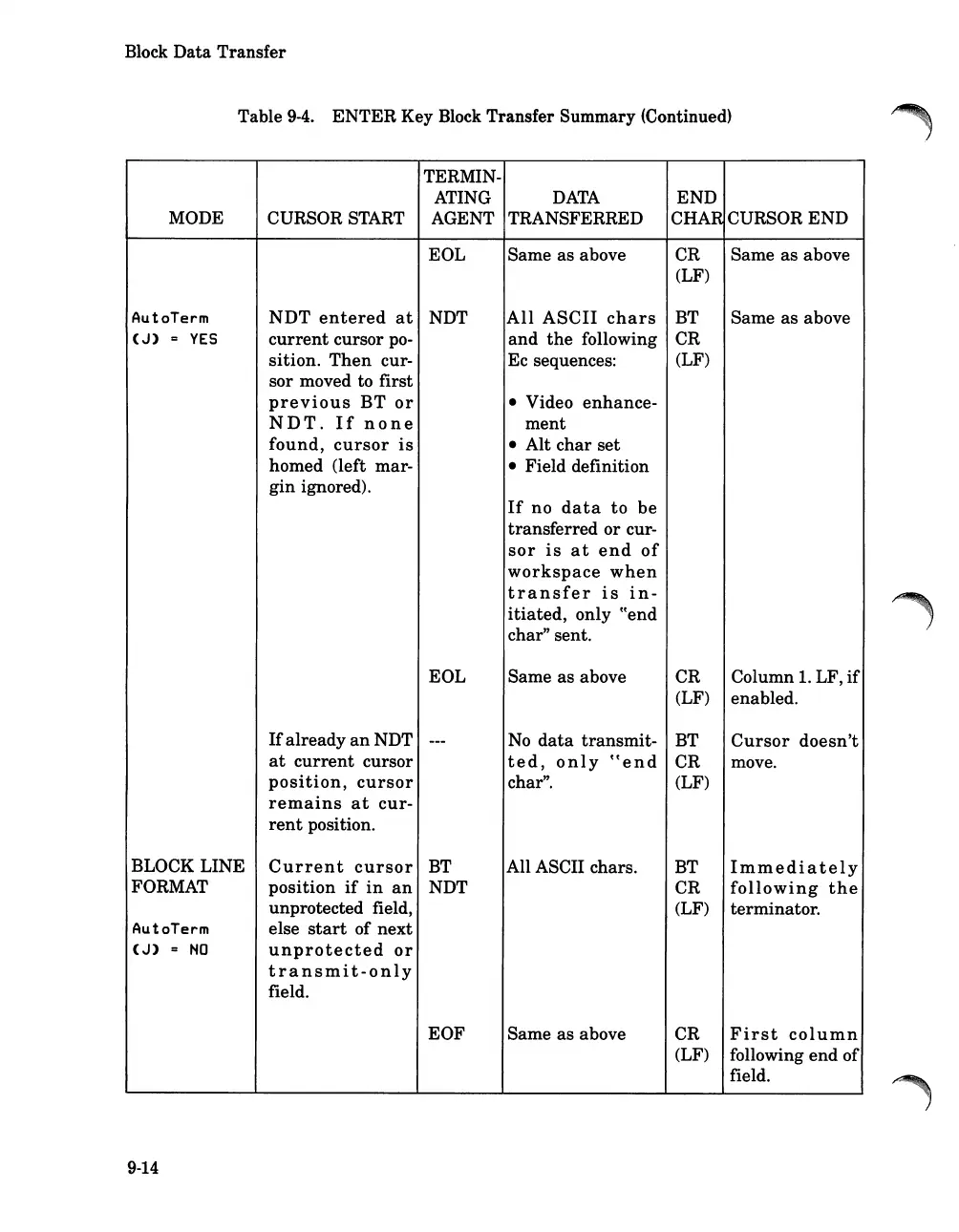 Key Block Transfer Summary (Continued)