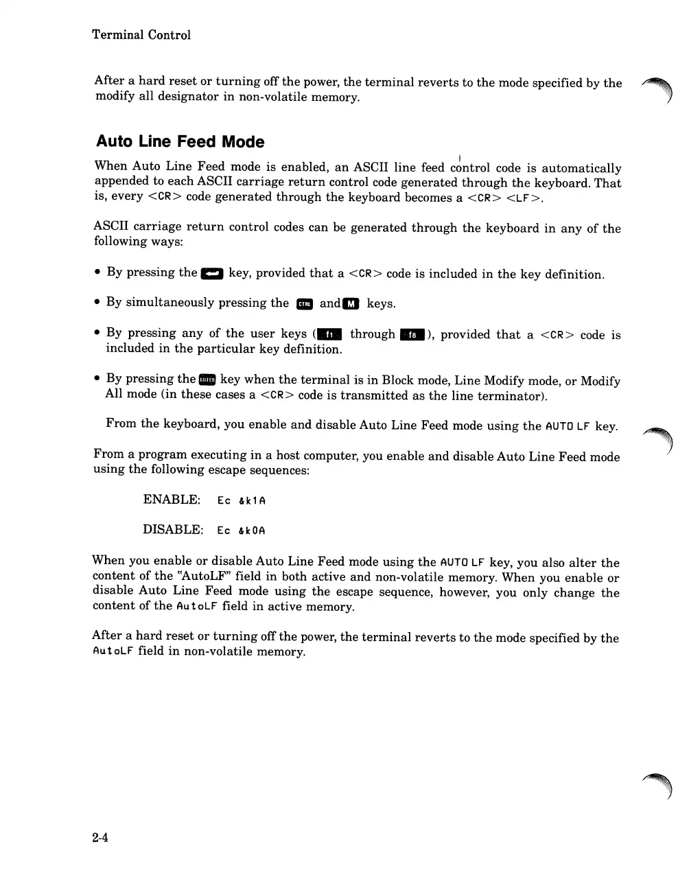 disable Auto Line Feed mode