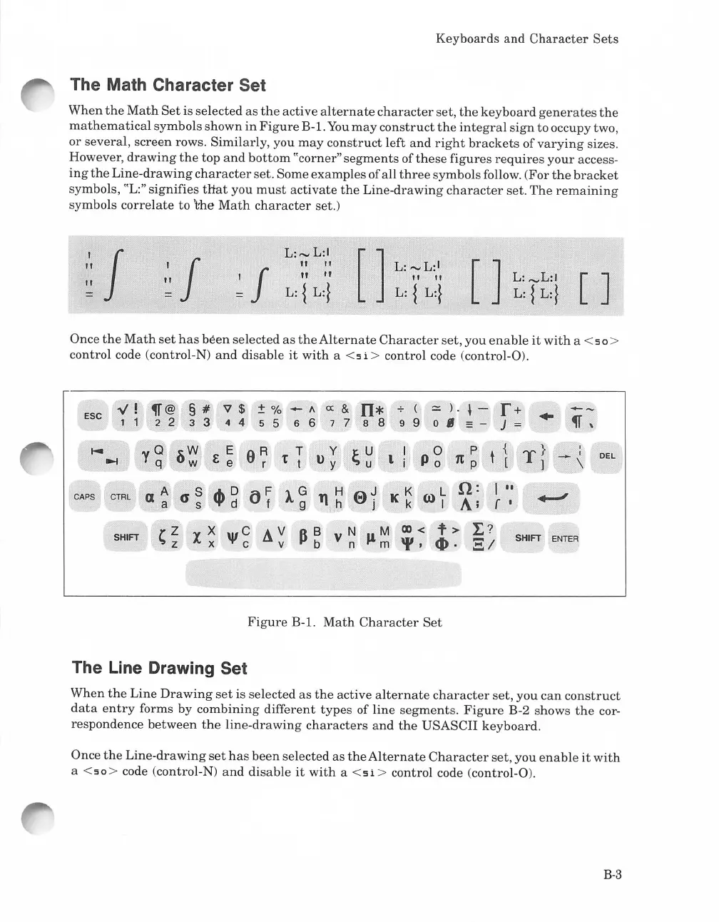 HP 262SA - The Math Character Set; The Line Drawing Set; Math Character Set