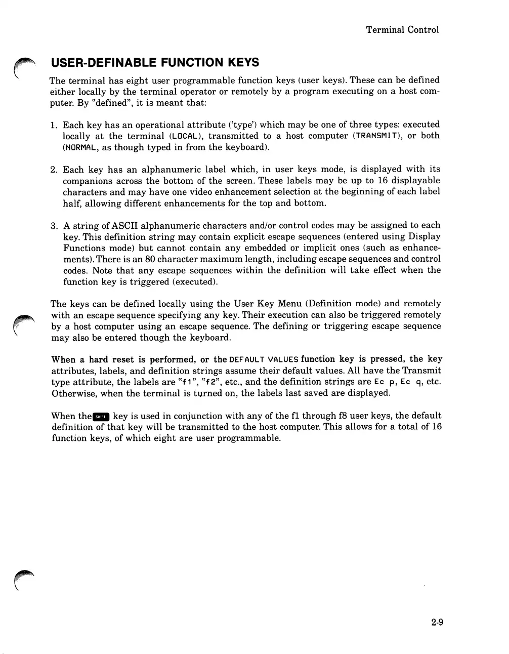 USER-DEFINABLE FUNCTION KEYS
