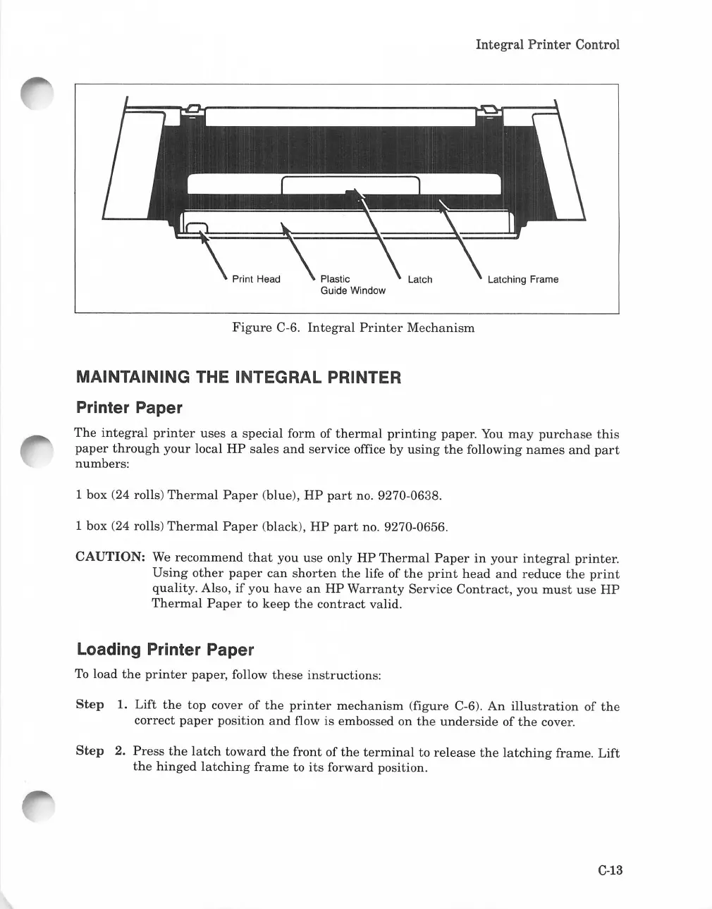 HP 262SA - Maintaining the Integral Printer; Printer Paper; Loading Printer Paper; Integral Printer Mechanism