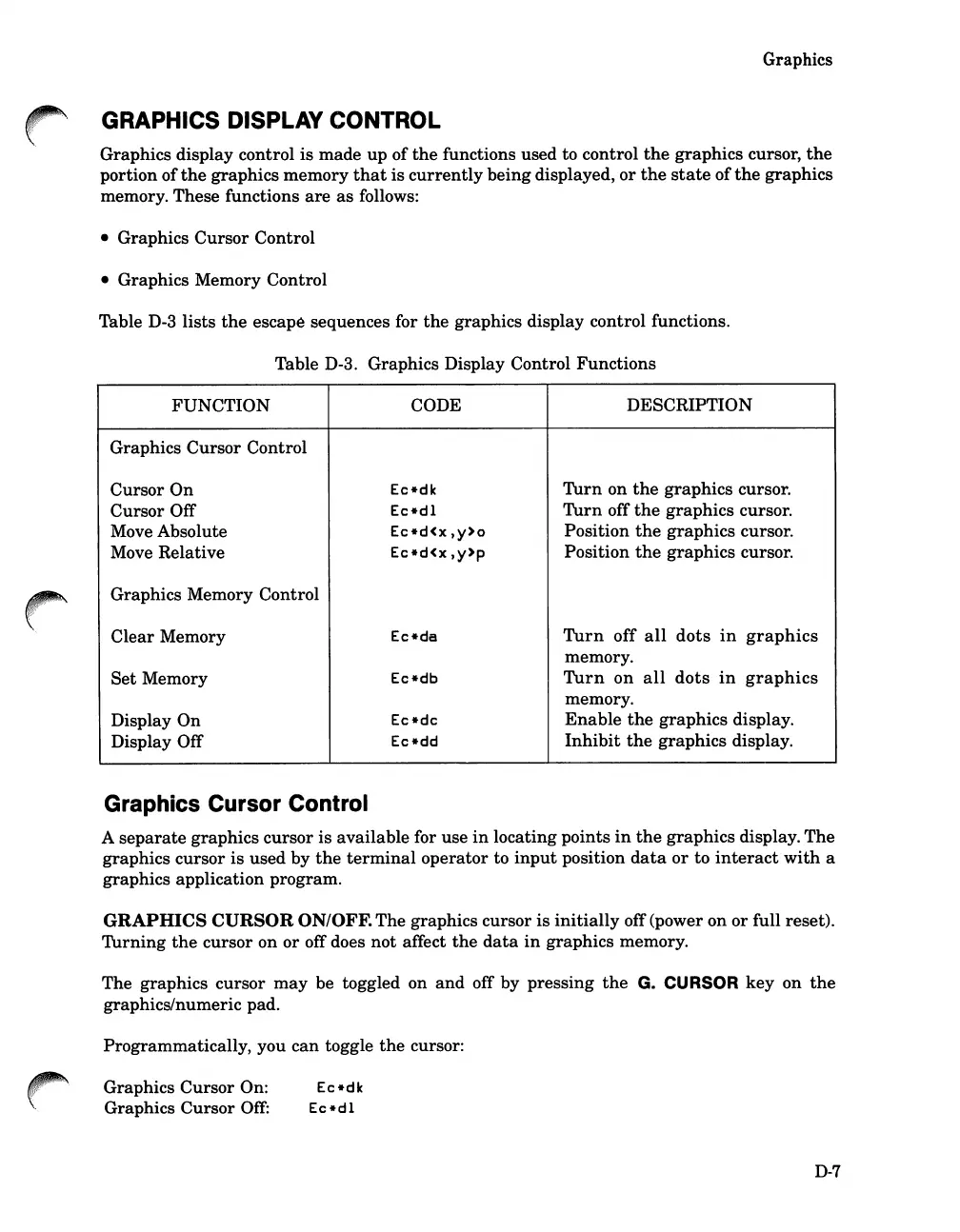 Table D-3. Graphics Display Control