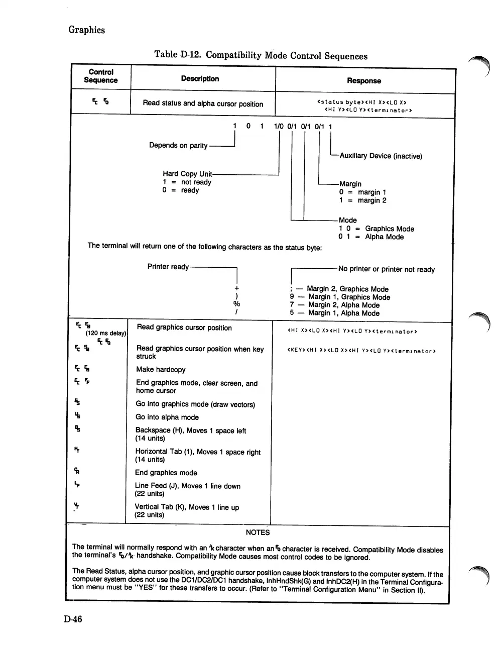 terminal's Ib/'k handshake. Compatibility Mode causes most control codes to be ignored.