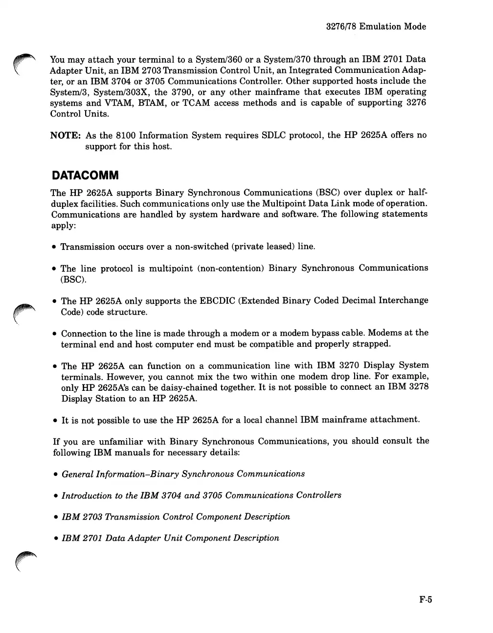 Synchronous Communications (BSC) over duplex or half-