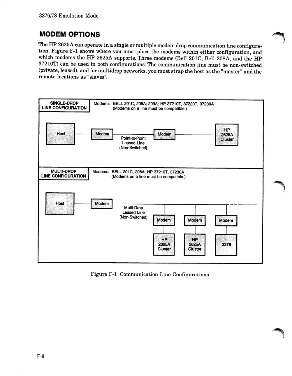 a single or multiple modem drop communication line configura-