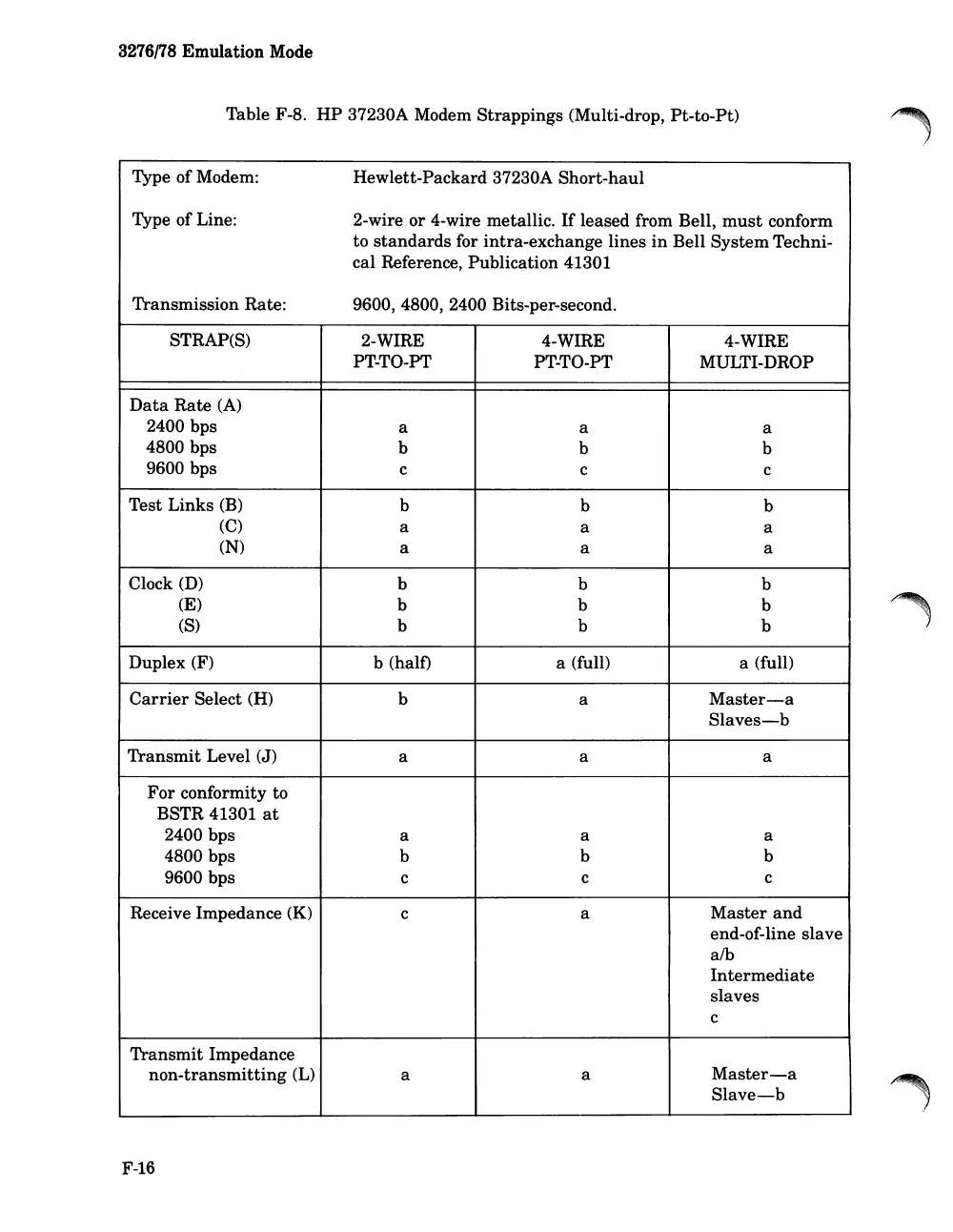 37230A Modem Strappings (Multi-drop, Pt-to-Pt)