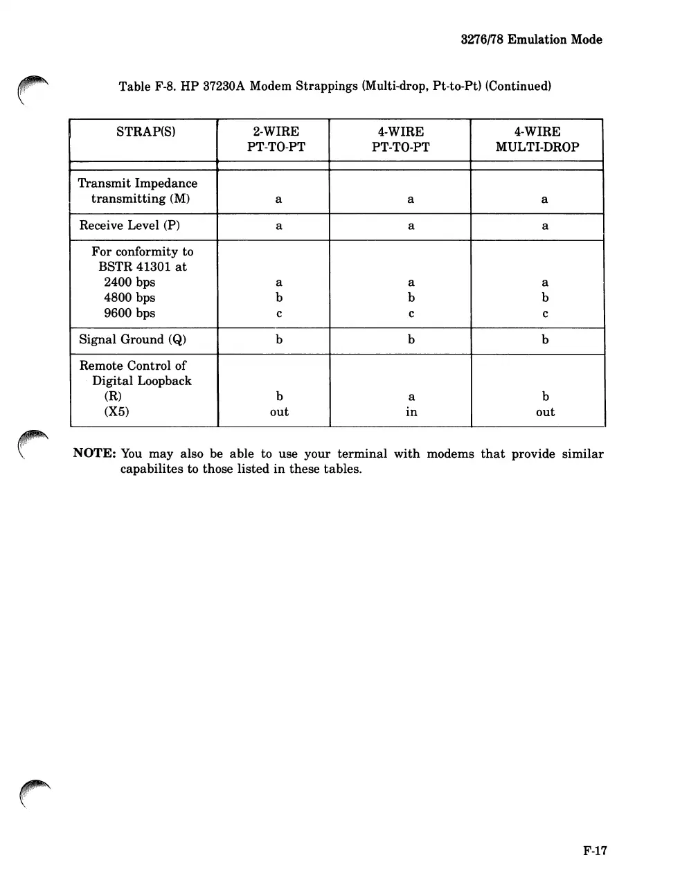 37230A Modem Strappings (Multi-drop, Pt-to-Pt) (Continued)