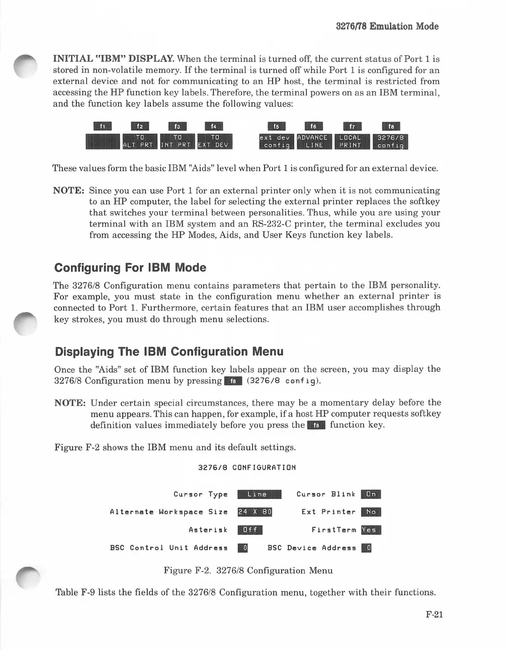HP 262SA - Configuring for IBM Mode; Displaying the IBM Configuration Menu; 3276;8 Configuration Menu