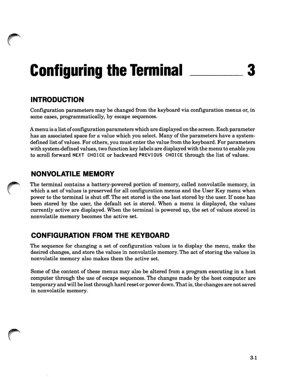CONFIGURATION FROM THE KEYBOARD