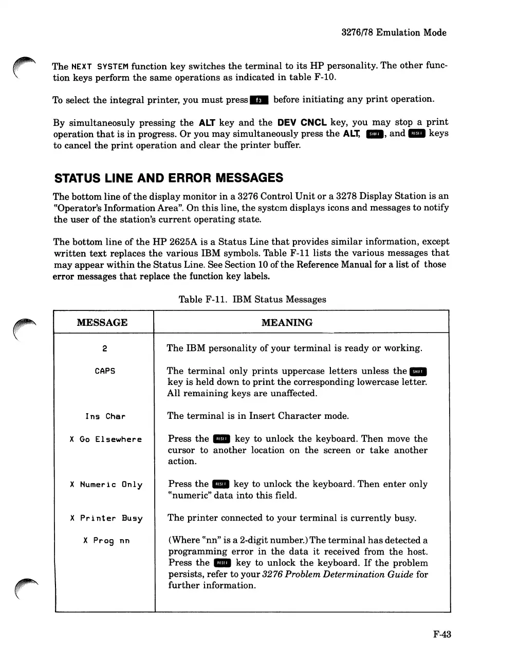 STATUS LINE AND ERROR MESSAGES