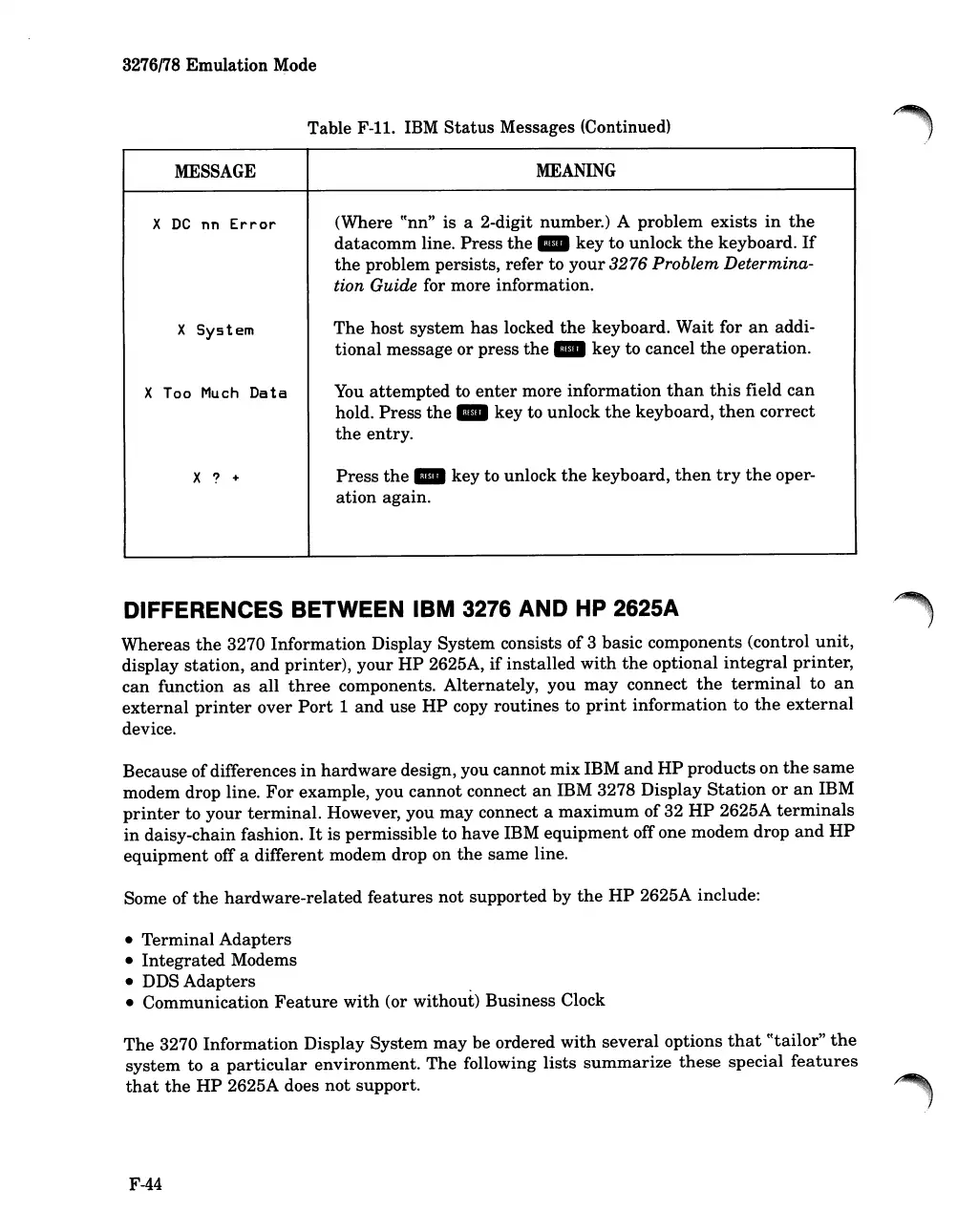 DIFFERENCES BETWEEN IBM 3276 AND HP 2625A