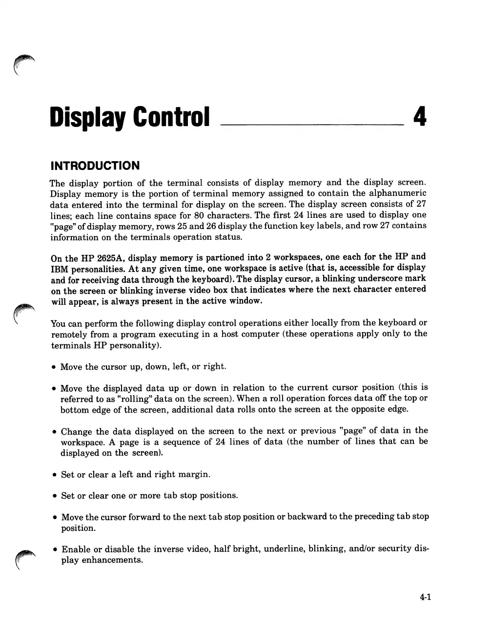 2625A, display memory is partioned into 2 workspaces, one each for