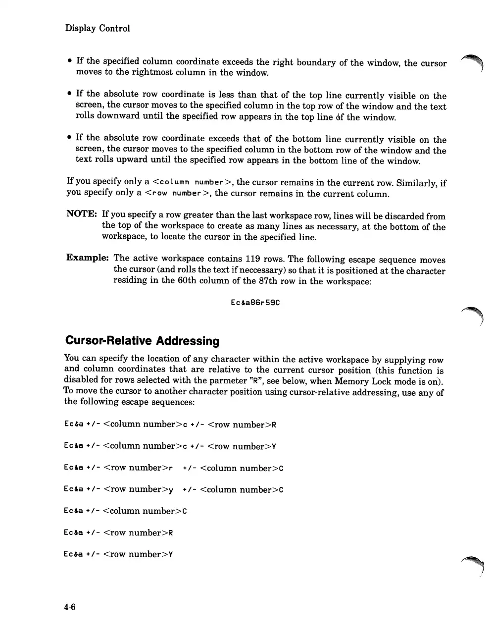 position using cursor-relative addressing,