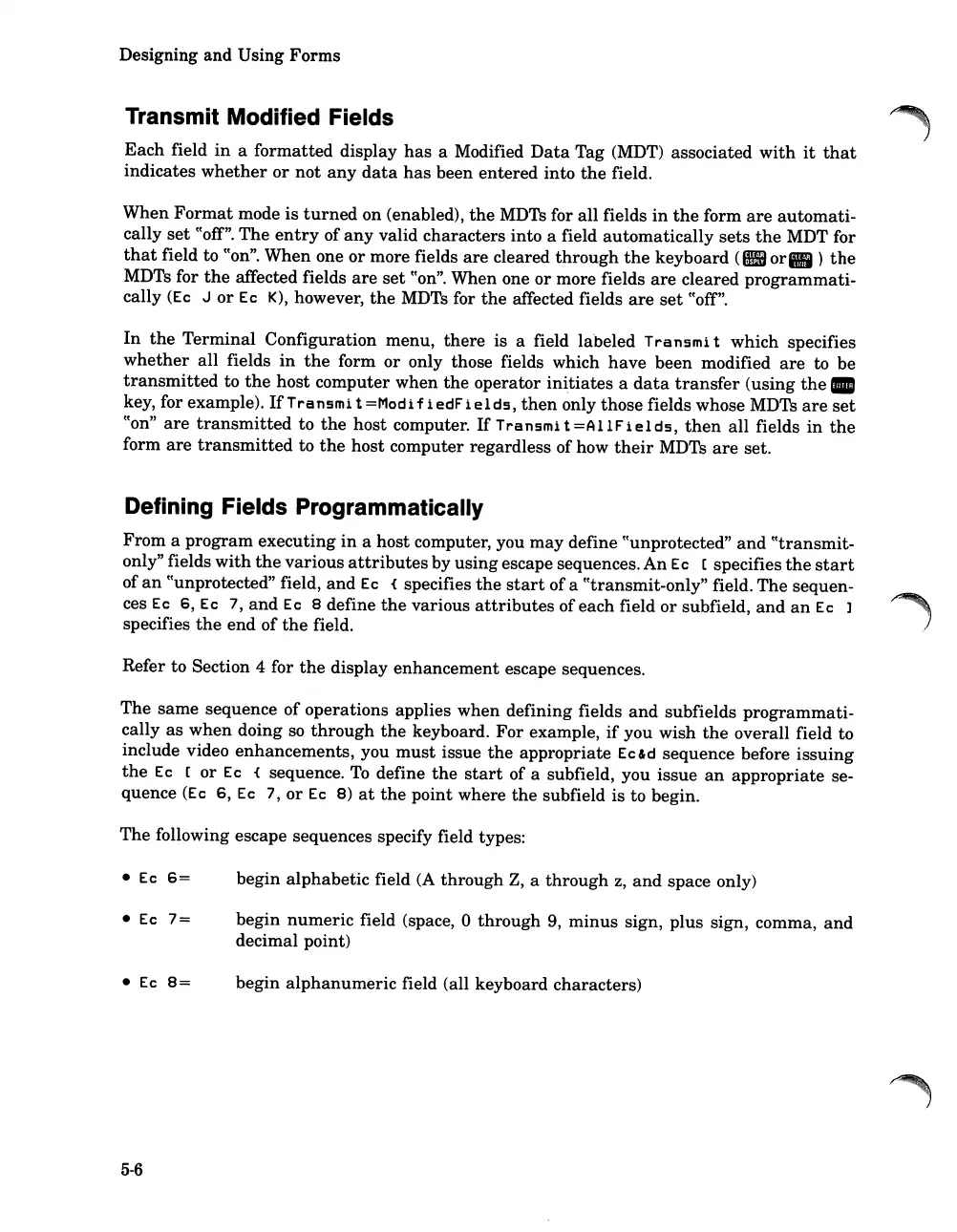 following escape sequences specify field types: