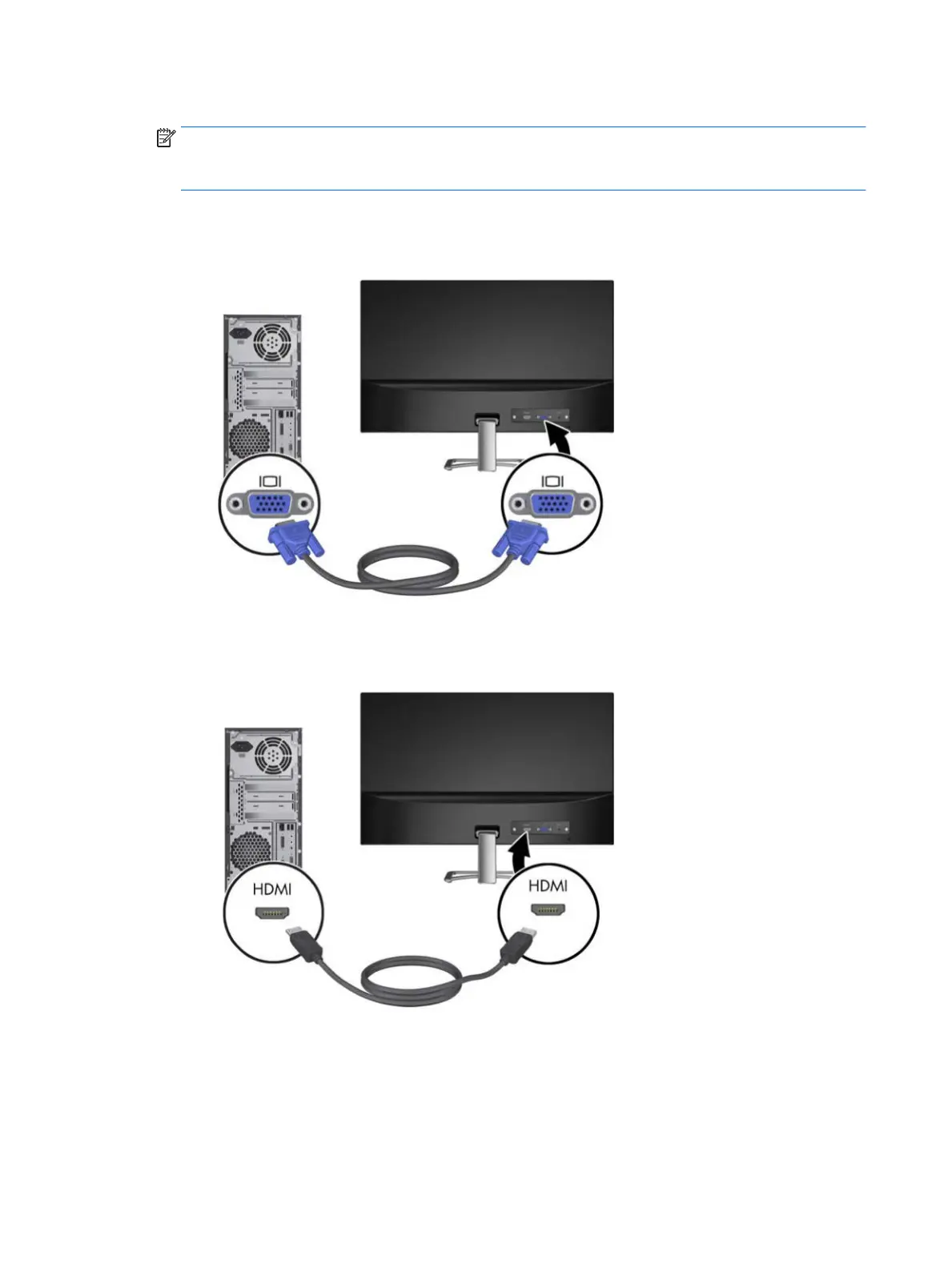 Connect a VGA cable to the VGA connector on the rear of the monitor and the other end to the VGA
