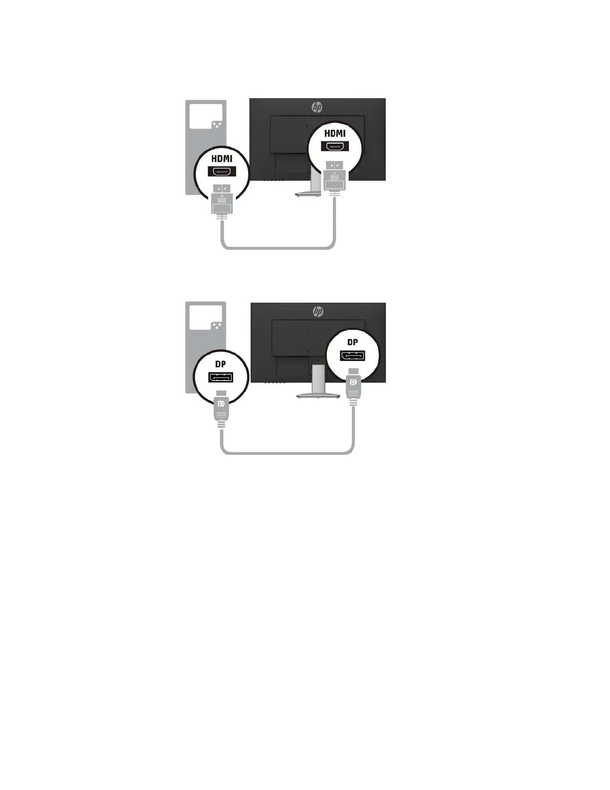 Connect one end of a DP cable to the DP connector on the rear of the monitor and the other