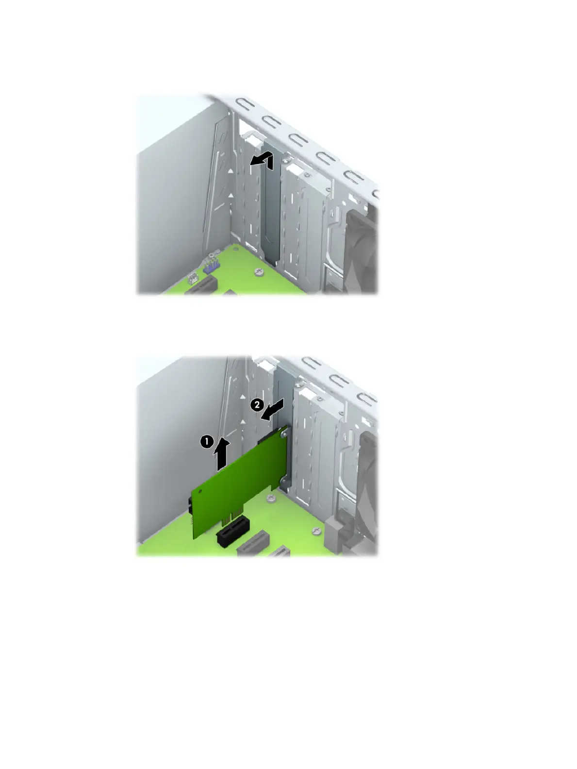 forth until the connectors pull free from the socket. Lift the card straight up (1) then away from the