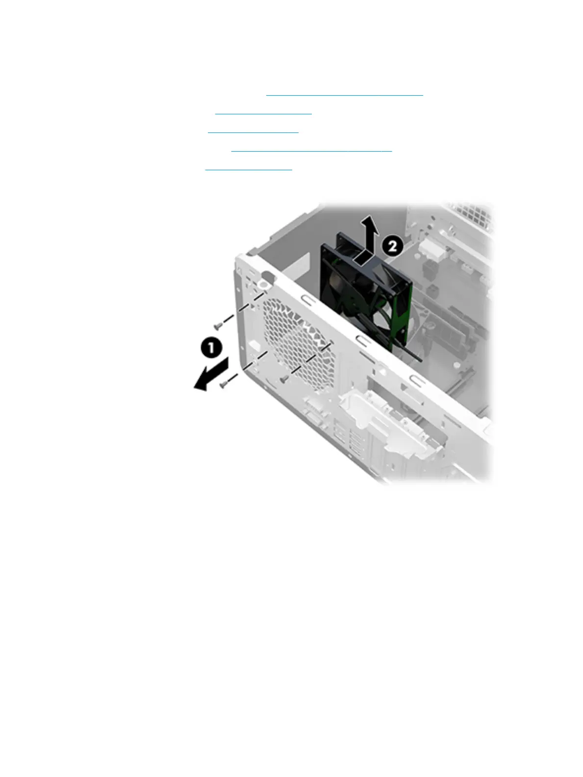 6. Remove the three silver Phillips screws (1) that secure the fan to the rear of chassis.