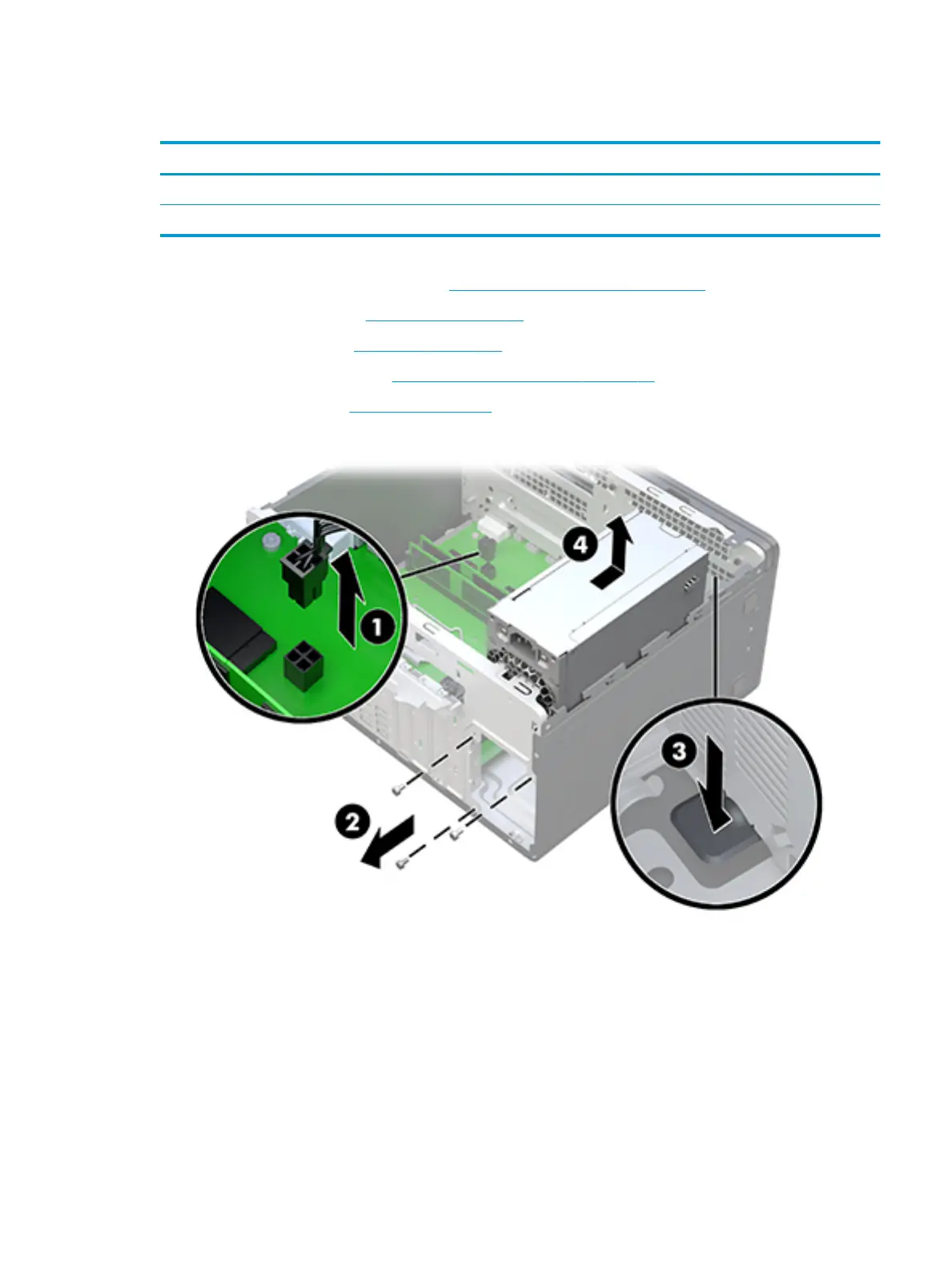 6. Remove the four silver Torx screws that connect the power supply to the rear of the chassis.