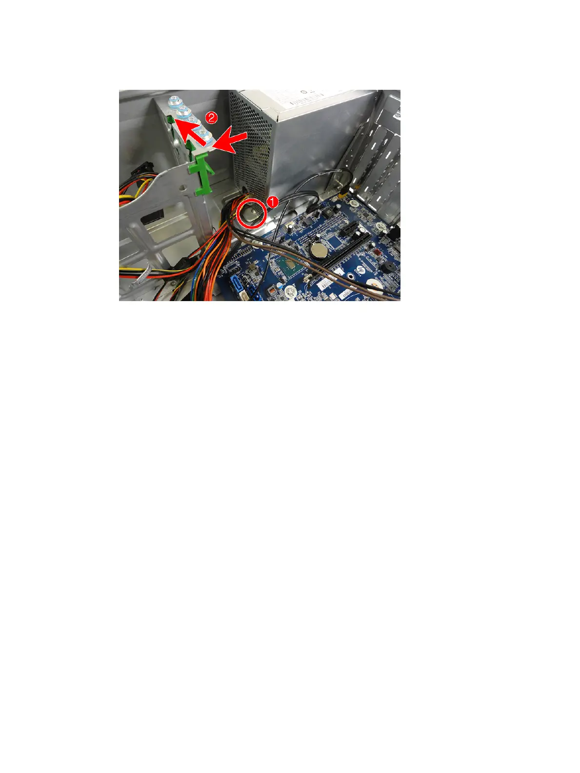 10. Slide the power supply toward the front of the computer, rotate toward the fan so the power supply clears
