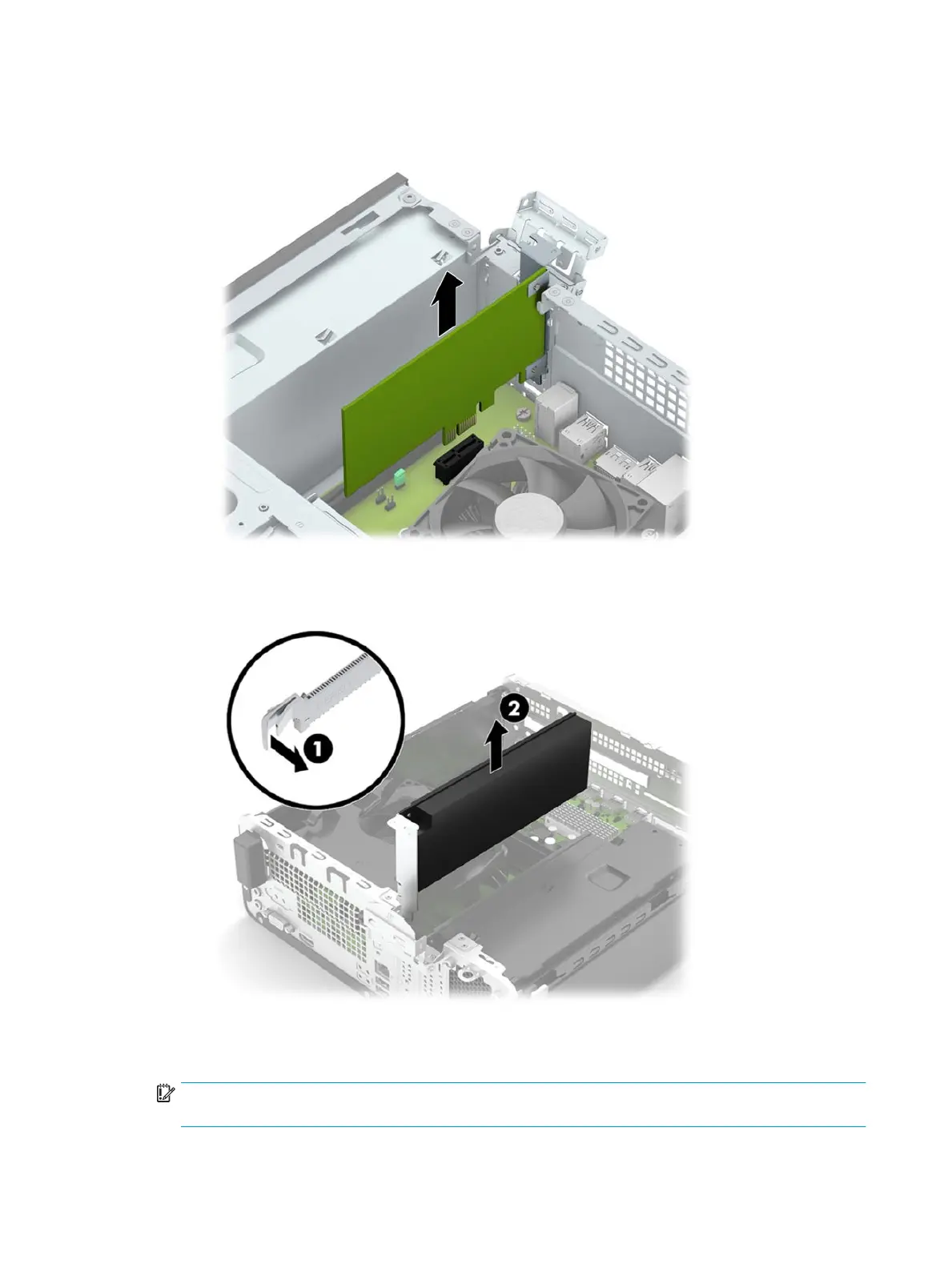 free from the socket. Pull the expansion card straight up from the socket (2).