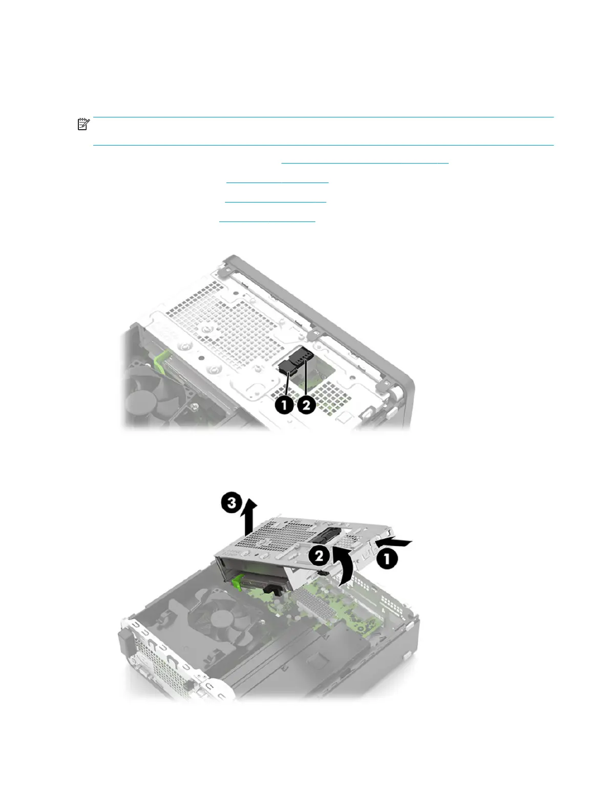 the hard drive. You must remove the optical drive to remove the drive cage.