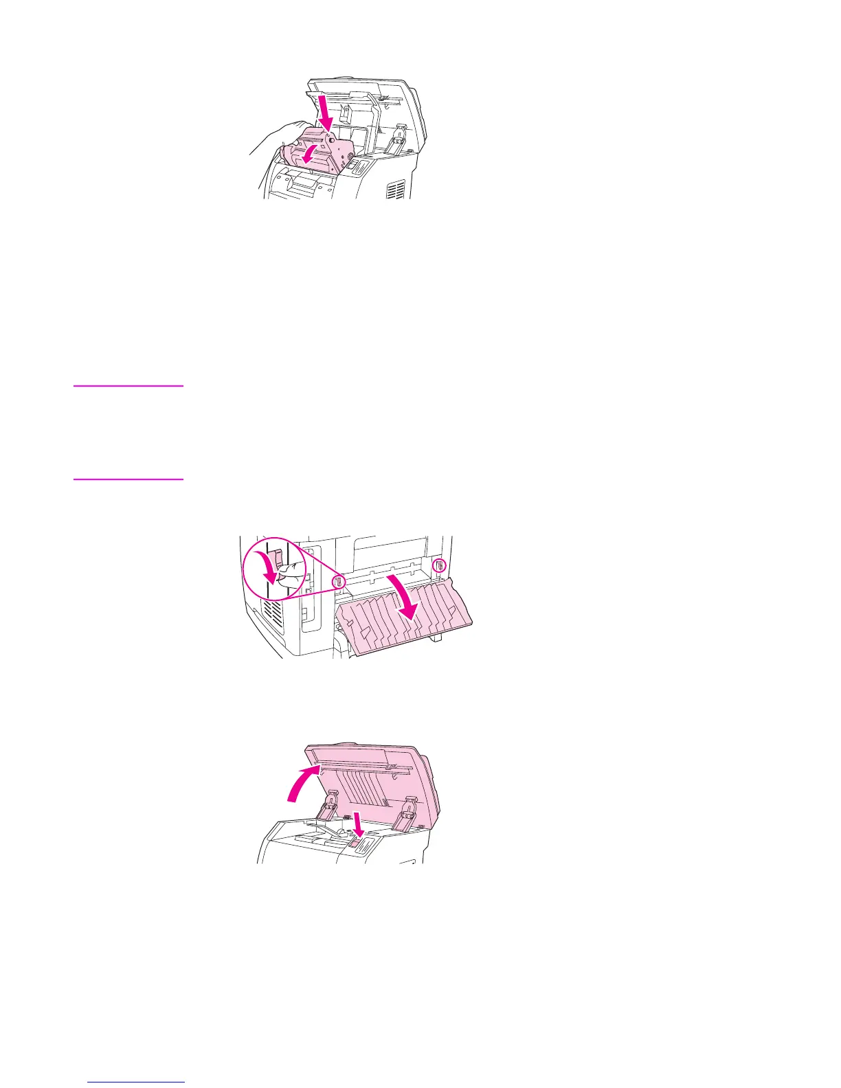 1. On the back of the device, open the rear-output door, and then push down the fuser