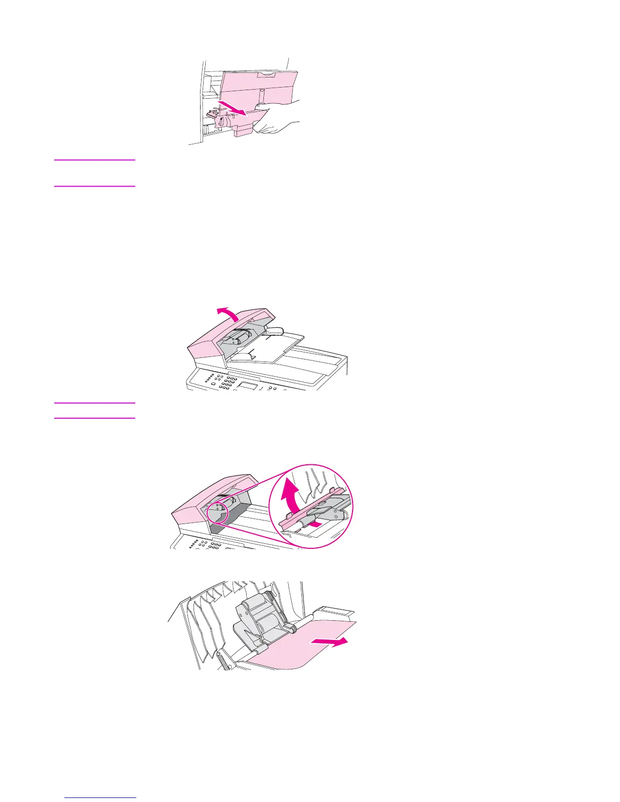 4. Using both hands, slowly and steadily remove any print media from inside the device.