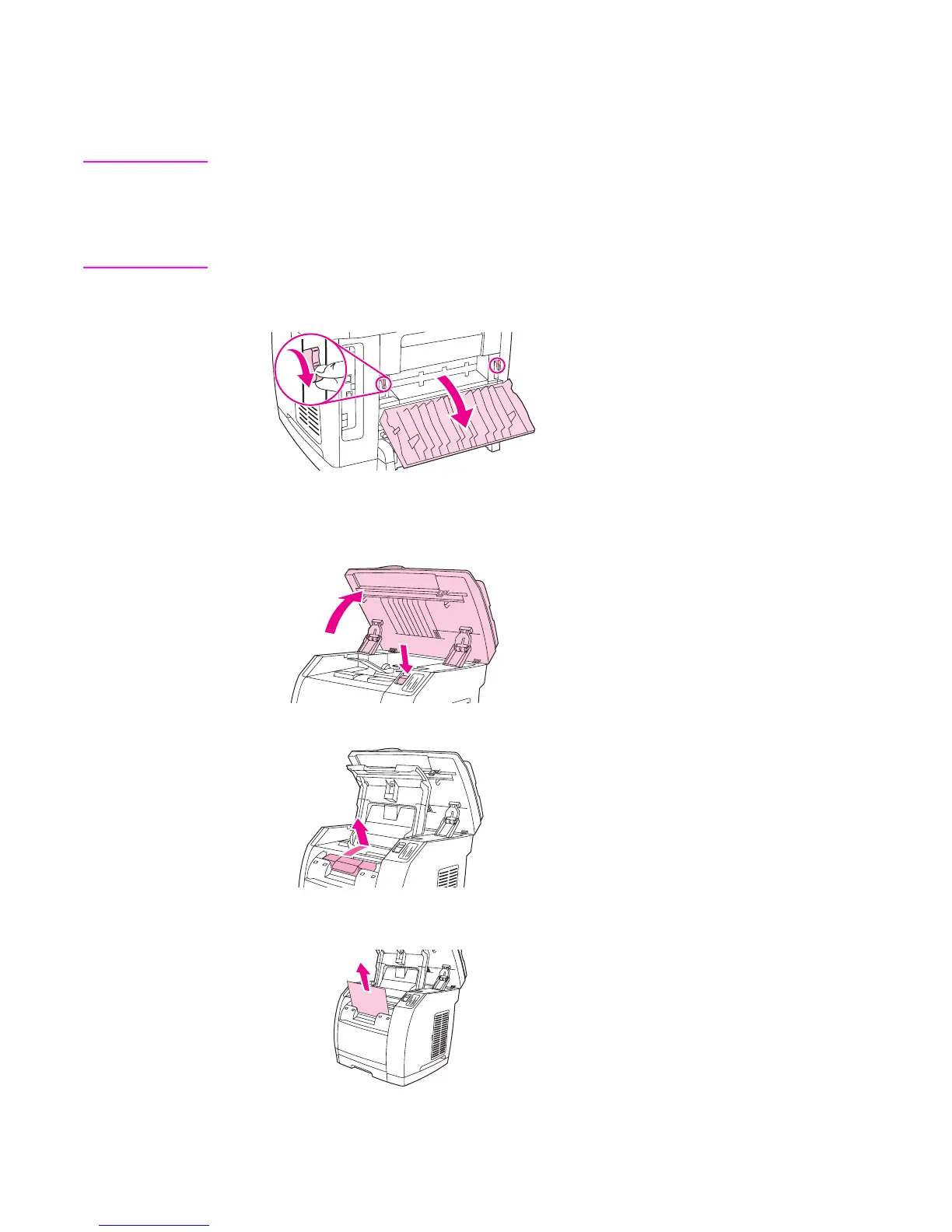 1. On the back of the device, open the rear-output door, and then push down the fuser