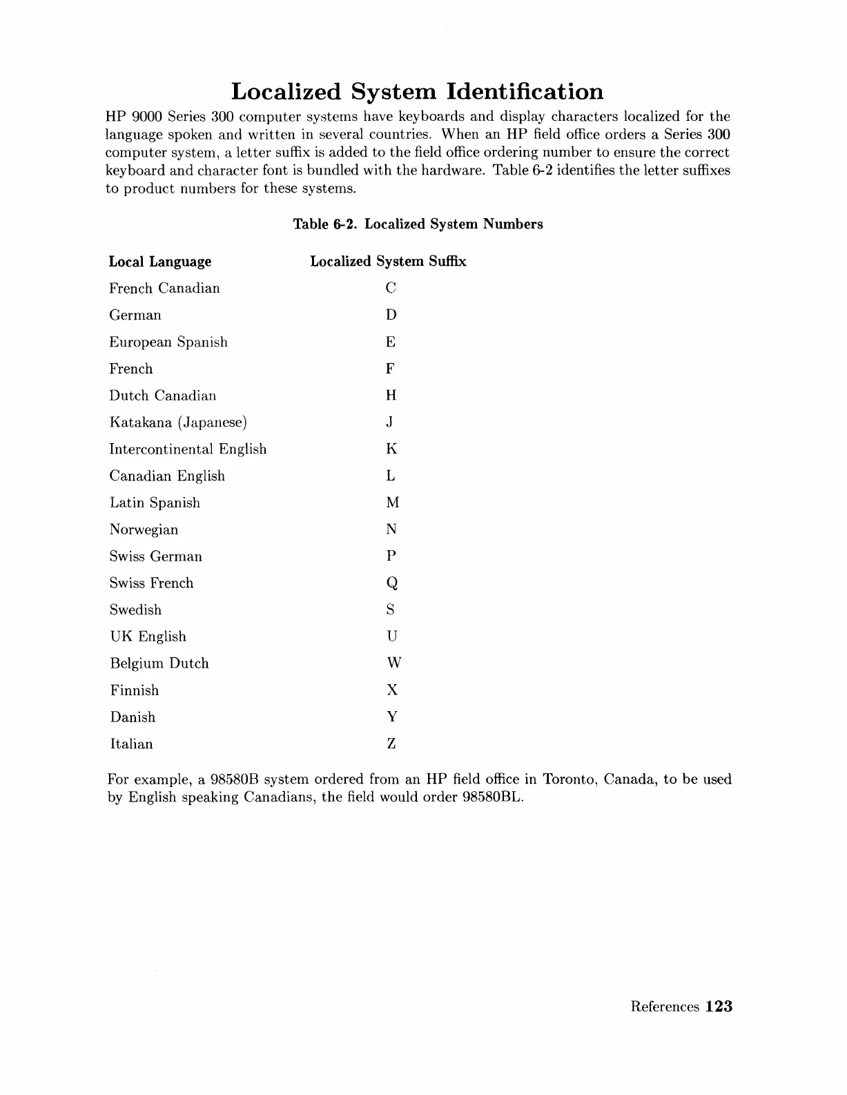 Table 6-2. Localized System Numbers