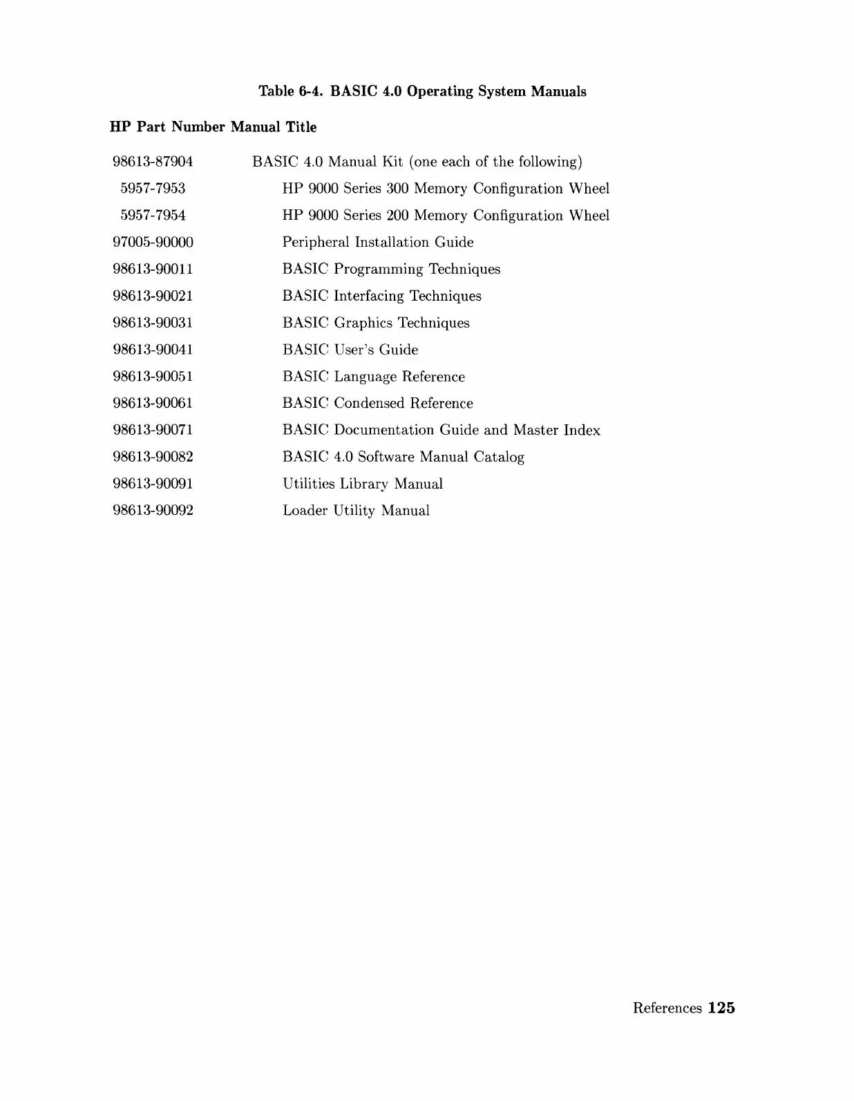 Table 6-4. BASIC 4.0 Operating System Manuals
