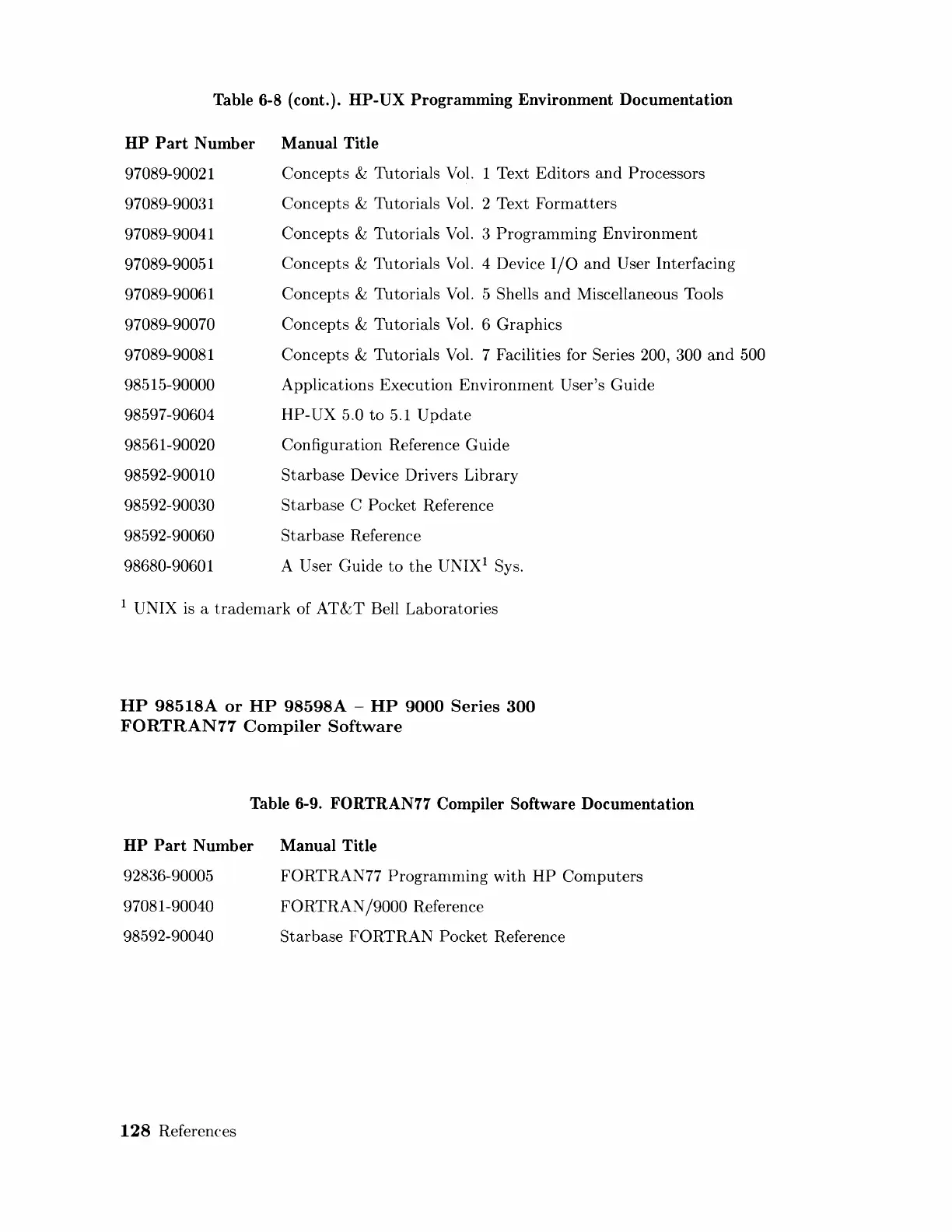 Table 6-8 (cont.). HP-UX Programming Environment Documentation