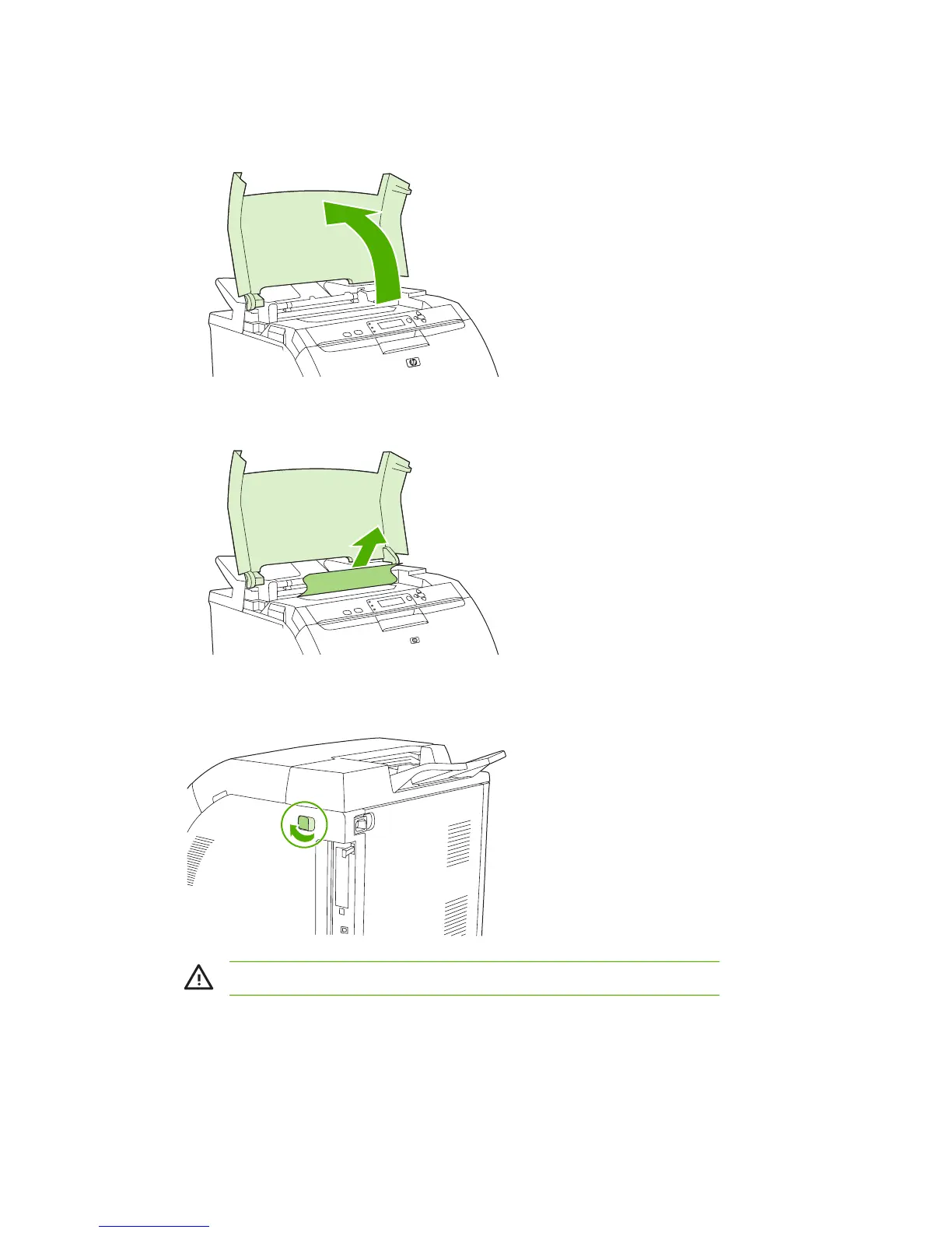 WARNING! The fuser will be hot. Wait 10 minutes before proceeding.
