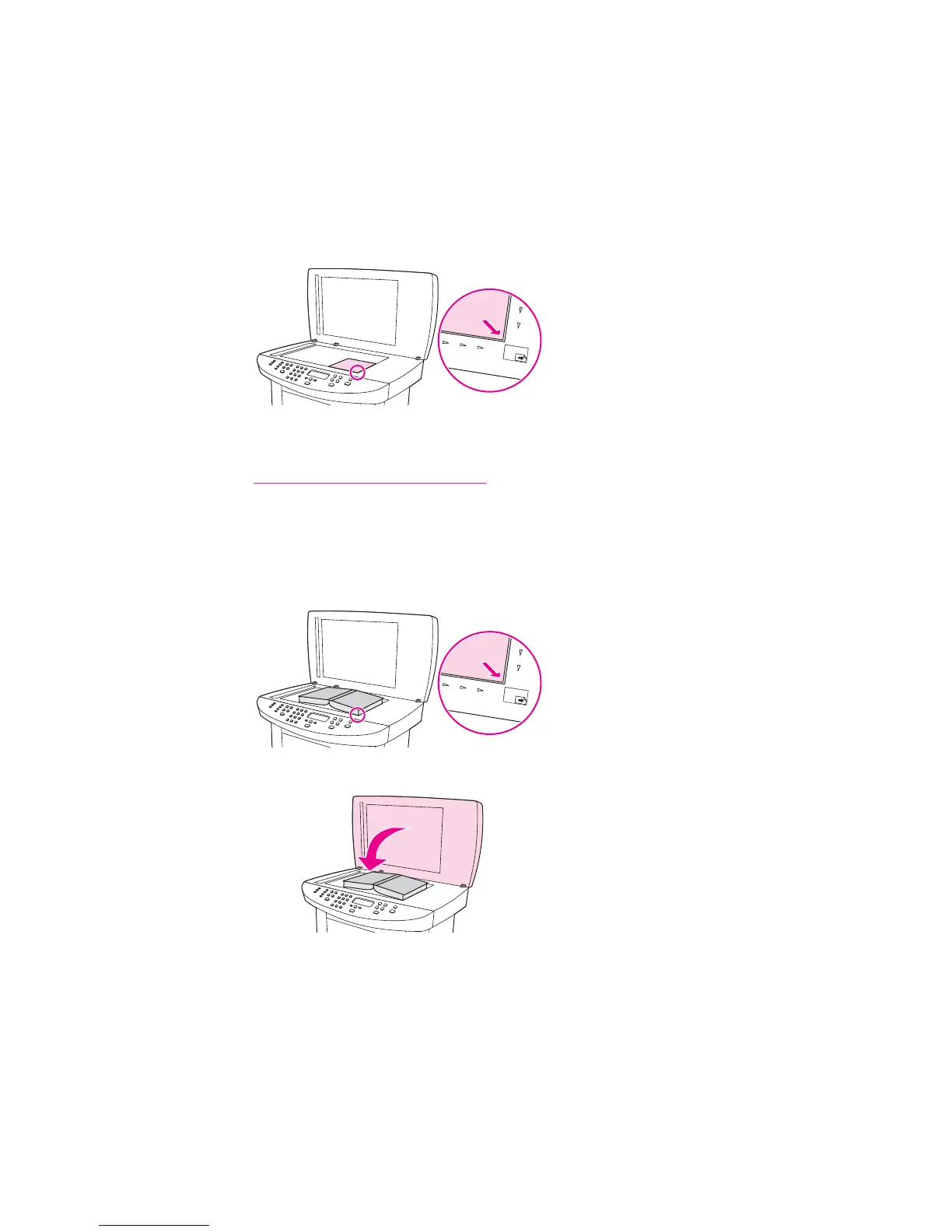 1. Lift the lid and place the book on the flatbed scanner with the page that you want to copy