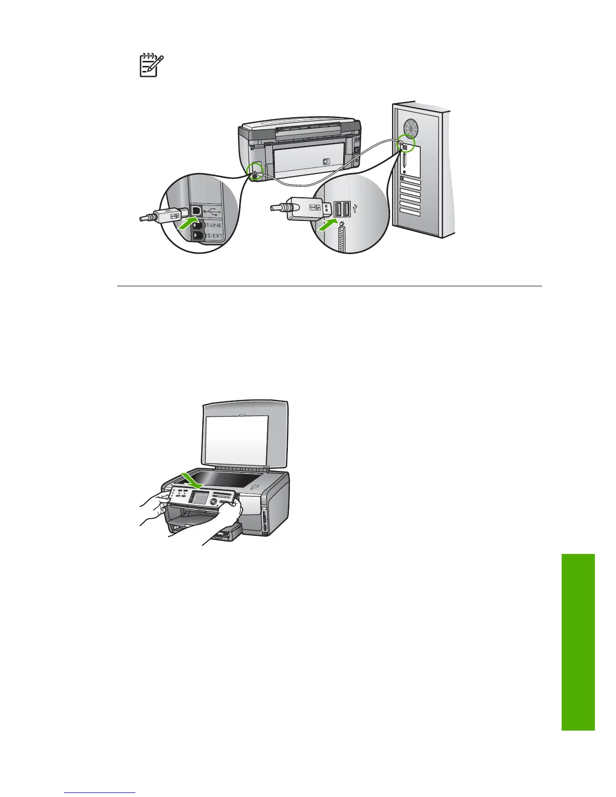 Note Make sure you connected the USB cable to the correct port on the